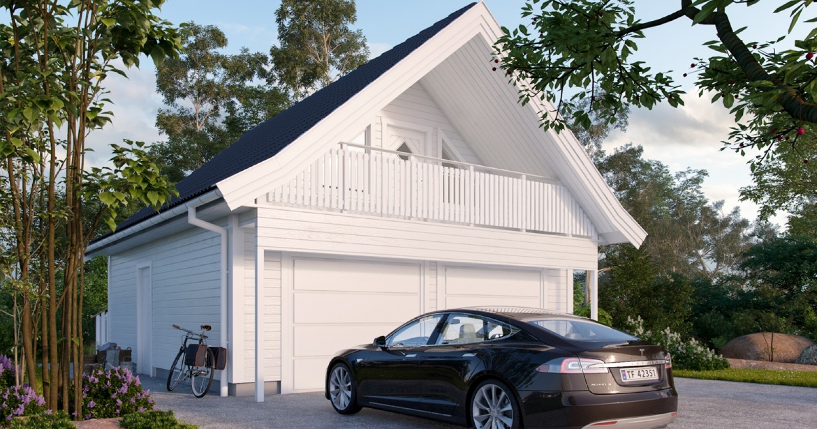I garasjen 808 har du både god lagringsplass og et ekstra oppholdsrom med veranda, i andre etasje.