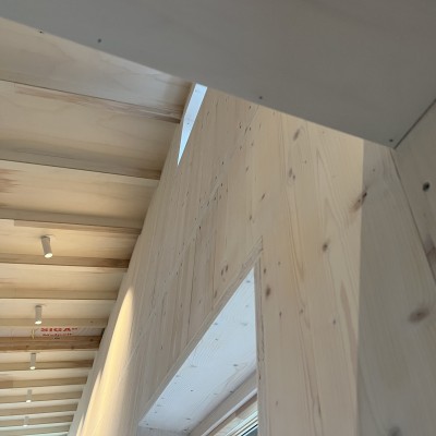 Boligen ble bygget med TEWO – elementer, og satt opp med tak over tak – stillas.